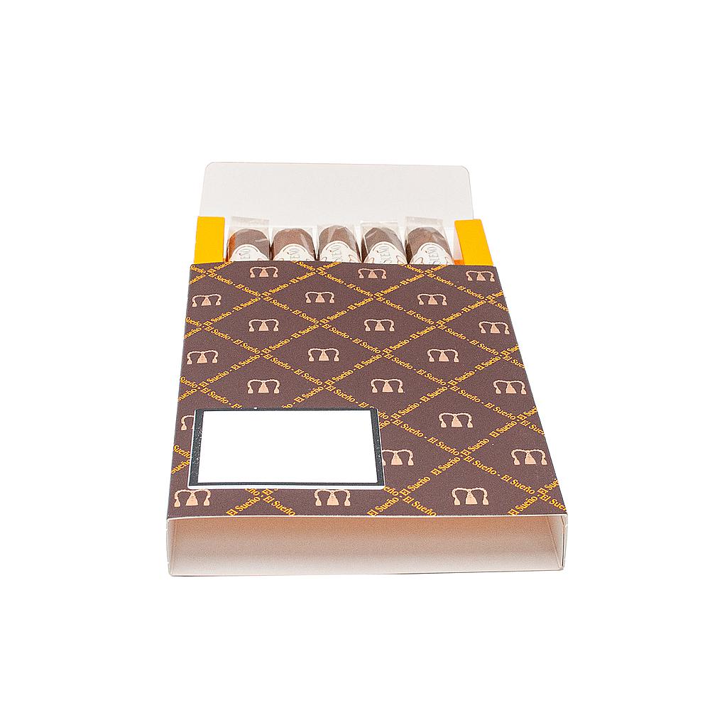 Ce Robusto se pare de la belle cape brésilienne Arapiraca, douce et grasse, comme tous les cigares de la ligne El Sueño Classic Line Maduro. Dès les premières bouffées il offre de magnifiques saveurs de café torréfié et de noisettes grillées. Dans son deuxième tiers la puissance et là et parfaitement équilibrée: le goût des fèves de cacao et des fruits à coques dominent. Dans le dernier tiers sa générosité apporte une élégante touche de réglisse. Un très beau module!