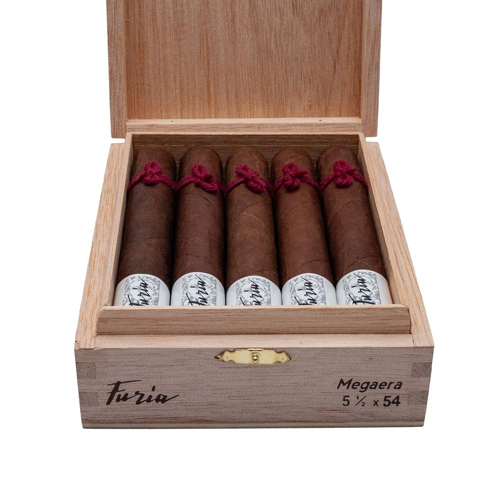 Furia Megaera. Cette nouvelle marque, créée par Didier Houvenaghel en association avec le célèbre A. Fernandez, présente des cigares manufacturés avec des tabacs de très grande qualité. La fermentation des feuilles est longue et bien aboutie; le tabac repose et vieillit pendant plusieurs années. Ce long travail, minutieux, vous ravira à l’œil comme pendant la dégustation. Leur tirage est excellent, leur fumée abondante, avec un côté brioché très gourmand et des arômes de fruits secs, notamment d'amandes. La dégustation est très agréable, avec une fumée ronde et crémeuse, évoluant sur des notes grillées et miellées qui montent en puissance, sans aucune agressivité. Une superbe réussite!