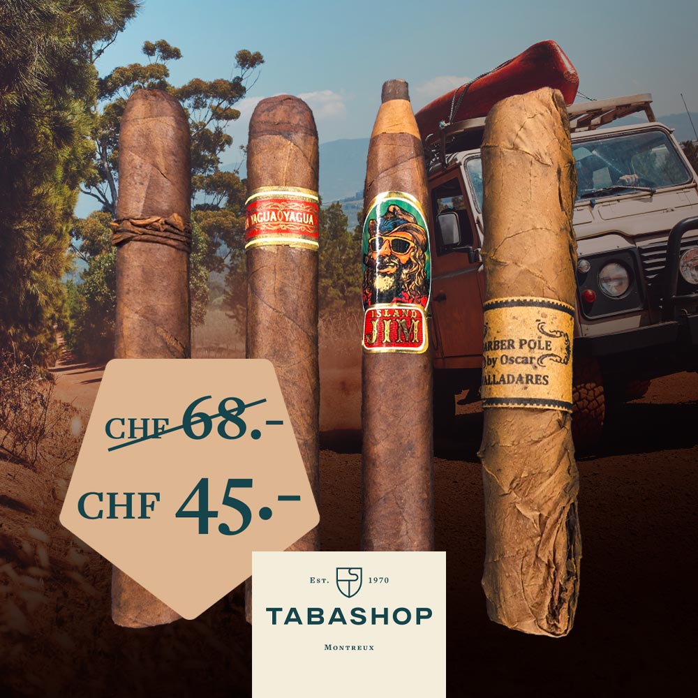 Dégustez en toute décontraction quatre cigares sortant de l'ordinaire, personnellement testés et approuvés par l'équipe du Tabashop: