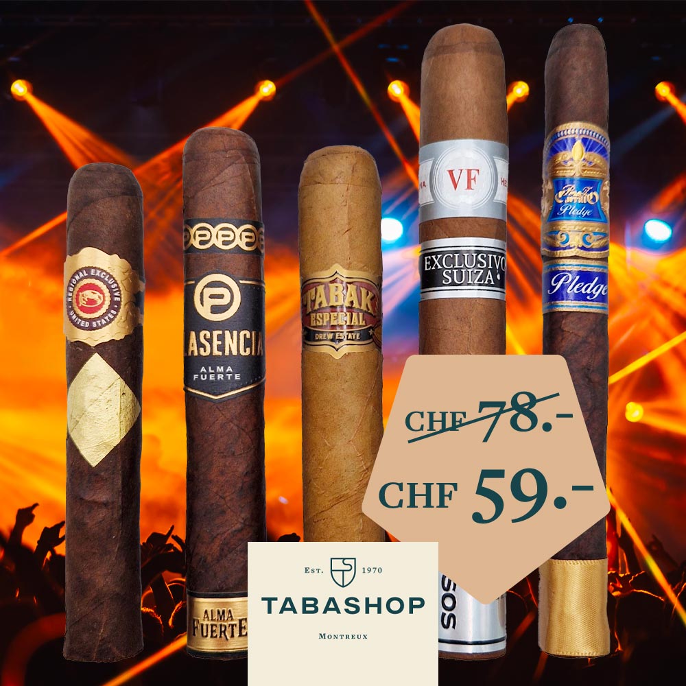 Il contient cinq cigares s'adaptant à différentes ambiances, dont un Cavalier destiné au marché U.S., un Plasencia élu cigare de l'année (Cigar Journal 2020), un Drew Estate naturellement aromatisé au café, un géant de chez VegaFina et un chef-d’œuvre de chez E.P. Carrillo.