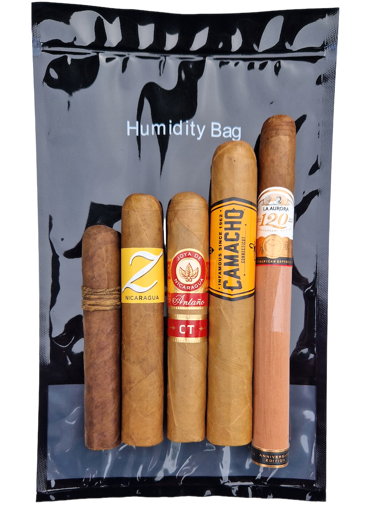 Cet assortiment de cinq cigares, livré dans sa pochette humidifiée facile à transporter, vous accompagnera lors de vos soirées barbecue ou vos randonnées. La pochette humidifiée garantit une parfaite conservation durant 90 jours.