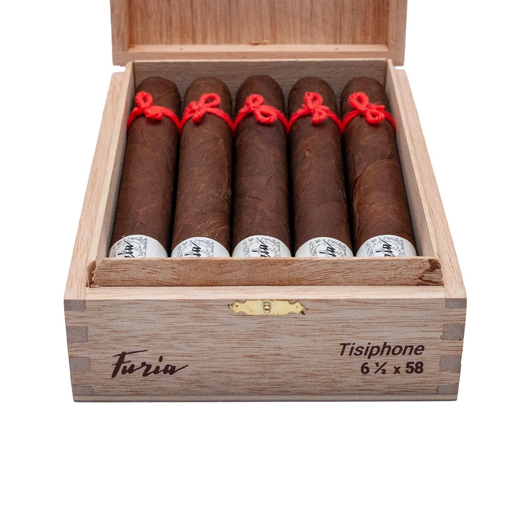 Furia Tisiphone. Cette nouvelle marque, créée par Didier Houvenaghel en association avec le célèbre A. Fernandez, présente des cigares manufacturés avec des tabacs de très grande qualité. La fermentation des feuilles est longue et bien aboutie; le tabac repose et vieillit pendant plusieurs années. Ce long travail, minutieux, vous ravira à l’œil comme pendant la dégustation. Leur tirage est excellent, leur fumée abondante, avec un côté brioché très gourmand et des arômes de fruits secs, notamment d'amandes. La dégustation est très agréable, avec une fumée ronde et crémeuse, évoluant sur des notes grillées et miellées qui montent en puissance, sans aucune agressivité. Une superbe réussite!