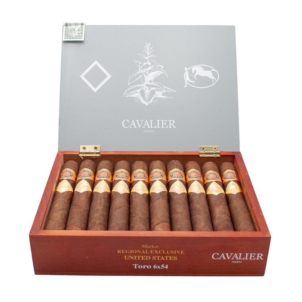 Cavalier Genève Black Series Regional Exclusive United States: une nouvelle mouture pour ces cigares destinés exclusivement au marché américain, que votre Tabashop est ravi de vous proposer au format Robusto et Toro. Leur profil aromatique est riche et recherché, avec les pointes épicées caractéristiques de la marque, ainsi que des arômes boisées, de fruits secs, chocolat et noix. Bien charpentés, ils se révèlent un peu plus corsés que les autres cigares Cavalier de notre assortiment.