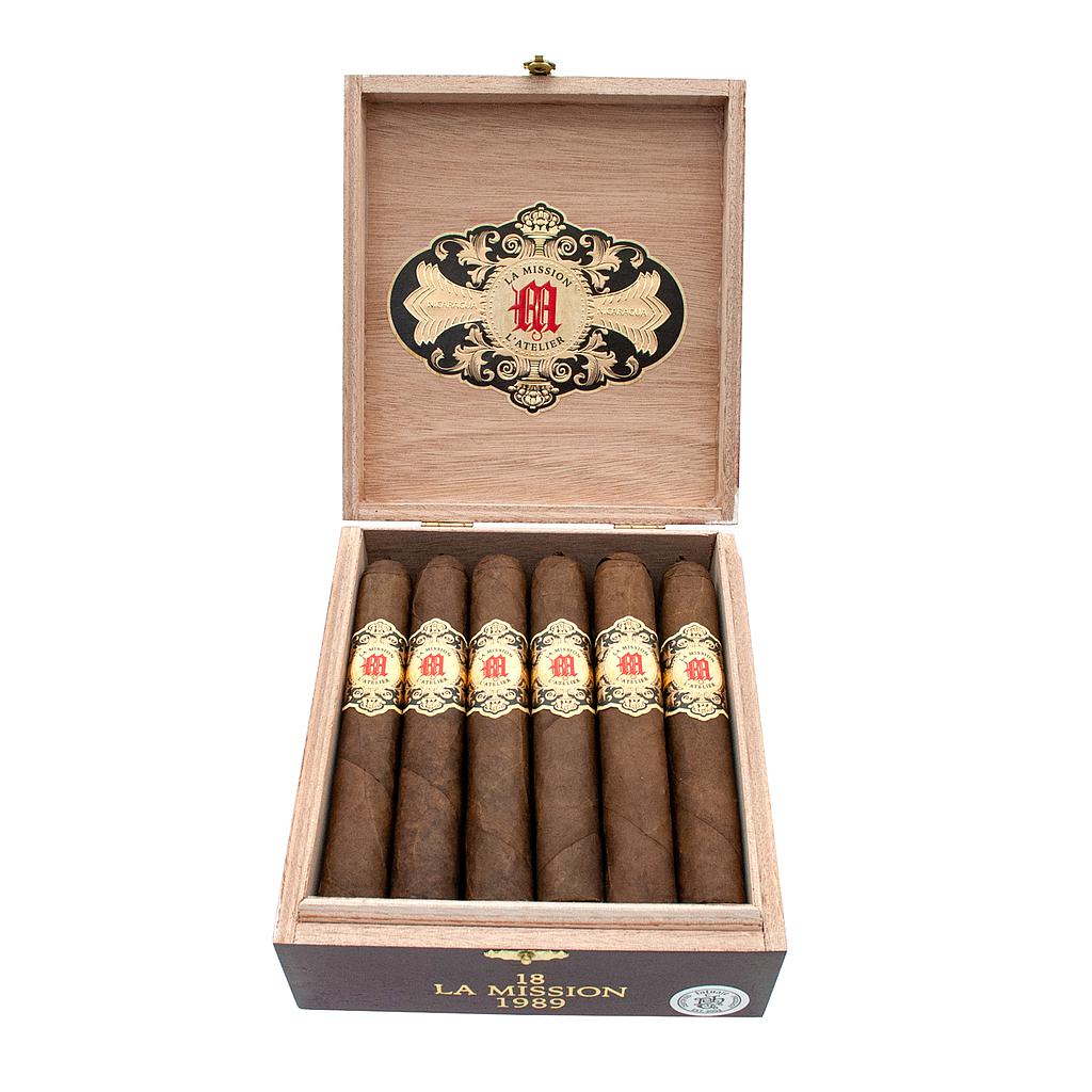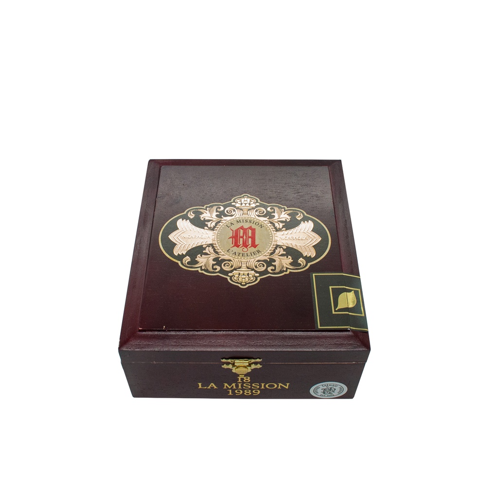 Les cigares La Mission L’Atelier 1959 sont fabriqués dans la manufacture My Father au Nicaragua. Leur cape mexicaine est de San Andres, leur sous-cape et leur tripe du Nicaragua. Ornés d'une magnifique bague, ils ont une finition très soignée. Le premier tiers est très puissant, avec des arômes de baies des bois, de cuir tanné, de chocolat et d’humus.