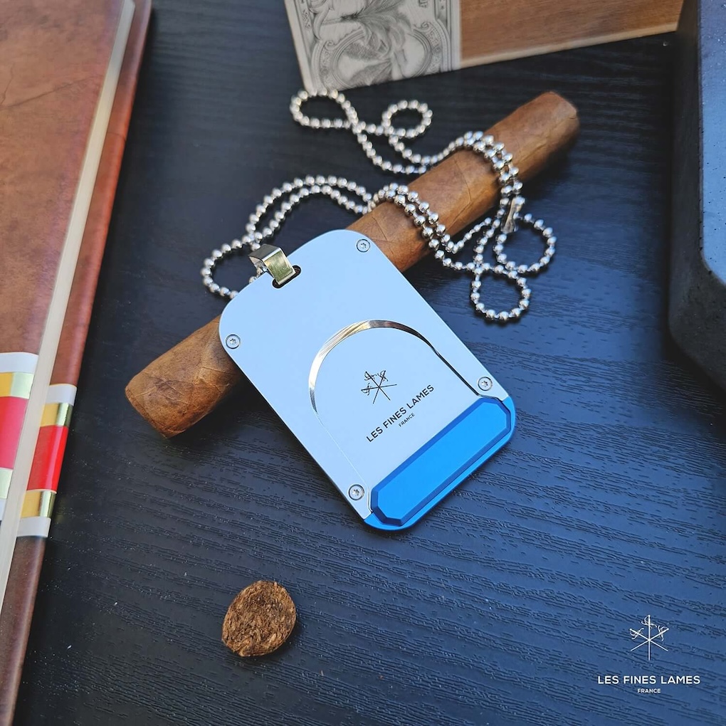 Inspiré de l'emblématique dog tag issu du monde militaire, le tag Les Fines Lames T135 s'intègre parfaitement à votre style quotidien. Ultra fin (3,15 mm) et solide, chaque pièce est fabriquée en France avec deux lames en acier inoxydable 420C, offrant une coupe parfaite à chaque fois.