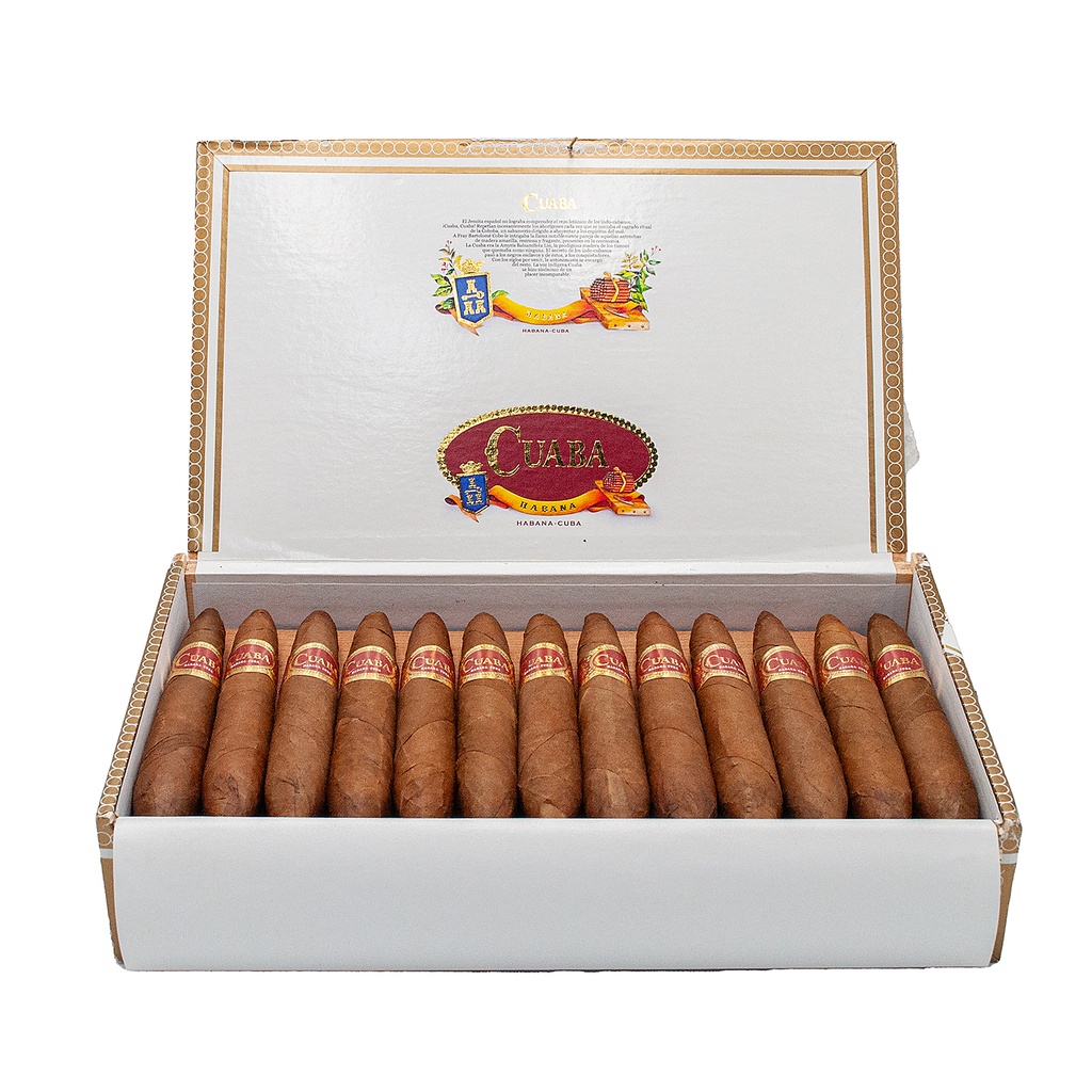 La marque Cuaba est née en 1996 - dans la manufacture Romeo y Julieta - et ne produit que des Doubles Figurados à la forme si caractéristique. Chaque cigare demande au torcedor de déployer tout son art. Ces vitoles magnifiques, roulées Totalmente a Mano con Tripa Larga, sont moyennes à fortes et utilisent les tabacs de la Vuelta Abajo.